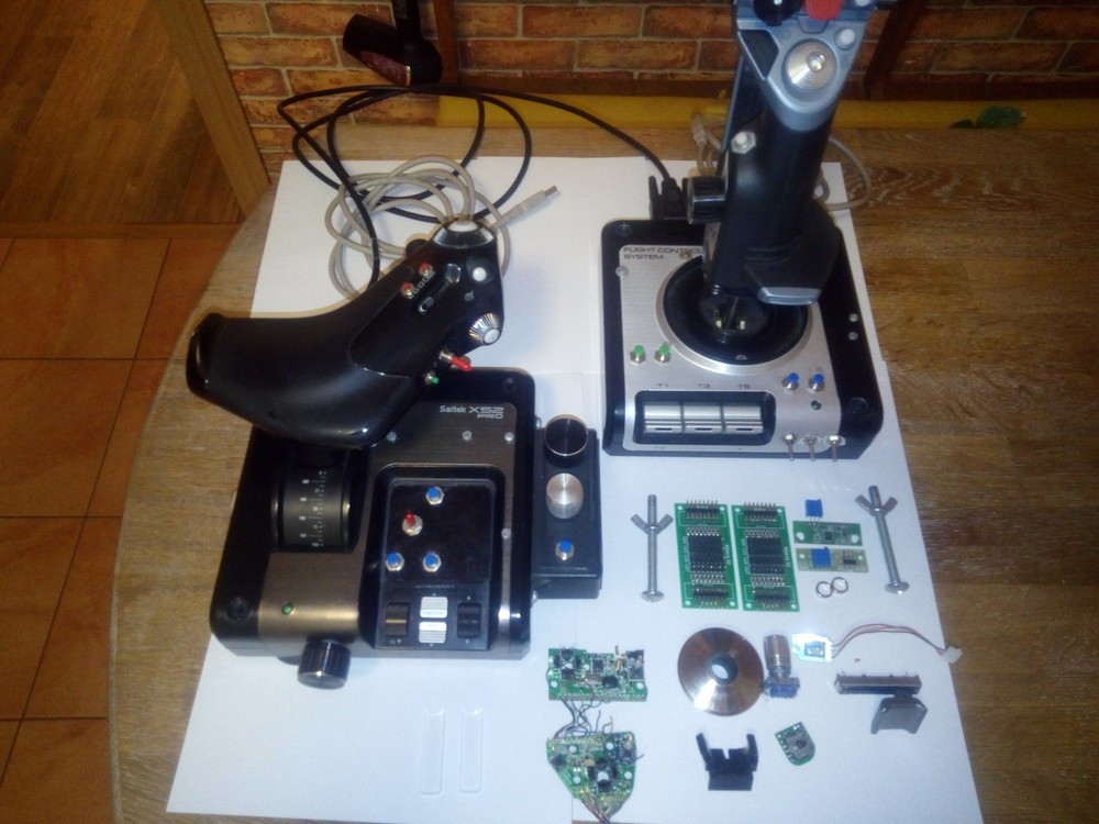 1. Джойстик Х52Про переведенный на железную асимметричная по тангажу (от себя нагрузка сильнее, чем на себя) механику от Ironman с форума Сухого и контроллер от Кремля. Механика к сожалению холловая, по Х подрагивает, но полетам не мешает. Уже не стал холл перепаивать (может перегрел), в комплект положу оригинальные холлы, марсы от GVL224 с магнитами, матрицы и остальную рассыпуху от джойстика. ПО к контроллеру, маппер и профили вышлю электропочтой. Цена - 10000р, небольшой торг уместен. 2. Педали БРД Микс первой серии с датчиком (не контроллером), подключаются к контроллеру Кремля. Окрашены, есть потертости. В комплект отдам ножки от основания и центровку без четкого центра. Цена - 4000р. Если джой и педали продадутся, то продам следующее: 3. Трекир. Брал здесь у п-к В НАТУРЕ. Клипса самодельная бесплатно отдам, клипсу с отражателями если найду - положу. Цена 5000р. 4. Камера СОНИ от плейстейшен с вынутым ИК фильтром. Цена 1500р. 5. Накидка вибро. Задом подавленая конечно. Ремешки подошьете если что. :) Цена 1000р. 6. Аккаунт DCS, список модулей в скриншоте. Переведу на левую електропочту. Цена - 3000р. Оплата на сберкарту. Посылки почтой РФ, ТК ПЭК, по Белгороду самопривоз, по области самовывоз. :)