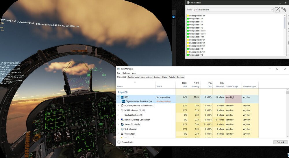 Another VR freeze after 45mn into the mission . I'm affraid the shiny new pagefile didn't help long. Nothing fancy in the log, some audio error, but I don't think it's related. I'm running short on ideas dcs.log