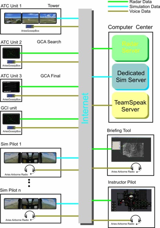 Dear DCS World user, Aries Wings Consulting and 10th Gunfighters community are proud to introduce a new radio communication system as freeware for all vehicles of DCS World. This includes Flaming Cliffs and Combined Arms. It is the first step of our radar project which requires specific airborne radios, standalone ground radios and IFF/SIF support. The software is for interest of that users, who want to take advantage of human controlled radar service for ASR, PAR, tower service and GCI in a multiplayer community. The airborne radio supports the following features for all vehicles: FC3 and CA support (additional radio panel) Manual frequency dialing, preset channel selection, guard channel selection, God's frequency (eavesdropper) for communication between players and non players, carrier detection light. As long as someone speaks on a selected frequency a green carrier light is seen on the corresponding panel. Box selection light, the selected radio box is marked with a yellow selection light. Voice encryption for A-10C via KY58 Special Support for A-10C, KA50, P51, Mig-21, F86,FW190, BF109-K,Mi-8, L-39, C-101, F-86, U-H1 Air picture function for the A-10C TGP (only with exported MFDs) full integration in TeamSpeak3 Range limitation by radio power Horizon line of sight Terrain masking Typical voice quality degradation White noise Type specific background noise IFF/SIF support Actual Version is 1.987, March, 17th 2016 Have a look to the end of this thread. The Software works in windowed mode only (not full screen). All details and downloads can be obtained from http://ariescon.com/