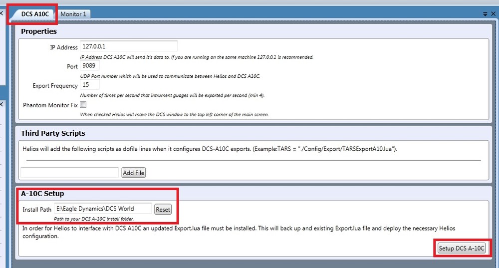 1. Go to the DCS A-10C tab 2. In the bottom section and make sure the Install Path to your DCS World directory is correct. 3. Once the install path is correct select the Setup DCS A-10C button in the lower right of that section.