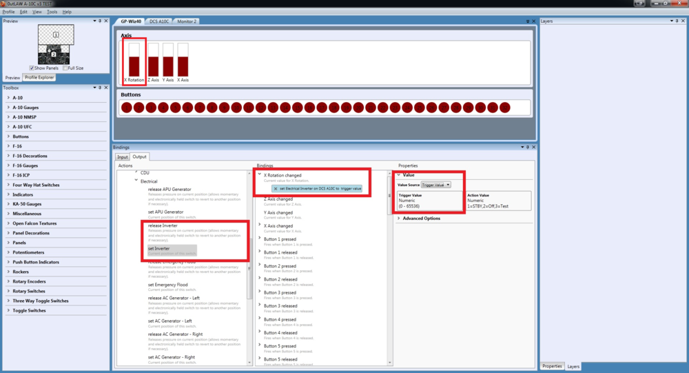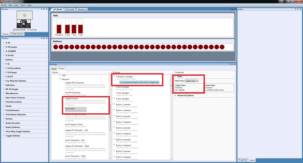 Here is a pic indicating my assignment in Helios and what the default action value is. My "theory" is that it's an issue of assigning a numeric value to the status of the inverter switch in a .Lua file in DCS World(for me 0=TEST, 32768=OFF, 65536=STBY)