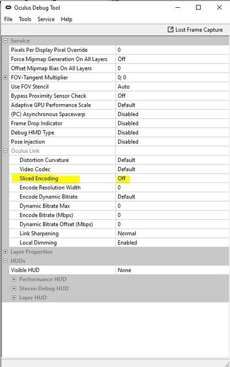 Добрался до дома. В общем, мне помогло отключение Sliced Encoding в Oculus Debug Tool (валяется в Program Files\Oculus\Support\oculus-diagnostics). Просто проставь на off: