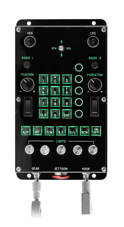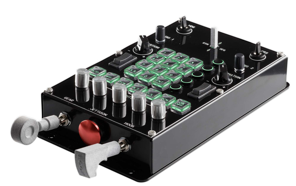 We have thought about many options and the box is the result of many compromises. The first version will feature the buttons and switches you see on the images, but they can be assigned to any function you want in the simulator. If you have a TM Warthog throttle, I suggest you assign some of those buttons to it. :-)