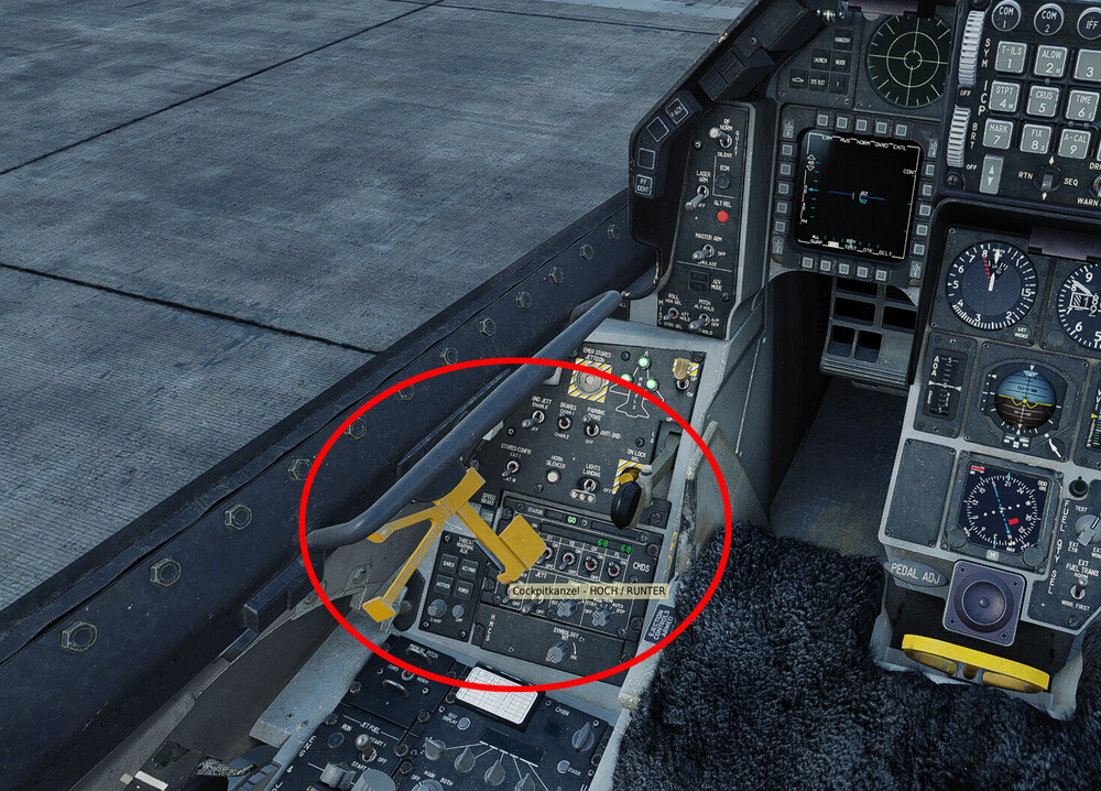 Hallo zusammen, ich hab da mal eine kurze & evtl. blöde Frage. Welche Tastenkombi / Belegung ist für den (gelben) Entriegelungshebel der Haube im F-16C Cockpit? hab alle mit Bezug auf Cockpitkanzel probiert,.