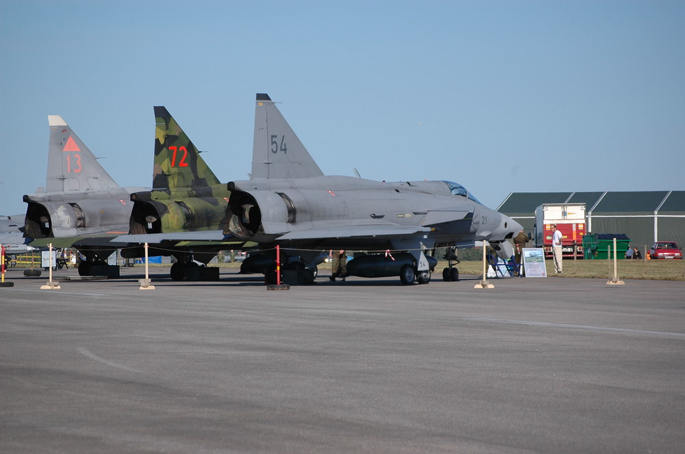 Some Viggen pictures I took at F17 at the air show 2004 when the 70 year anniversary was. The first picture has the SF-37 in front, the second is the JA-37 and then a front view of the SK-37 trainer followed by a side view and last a rear view of two JA-37 and the SK-37.