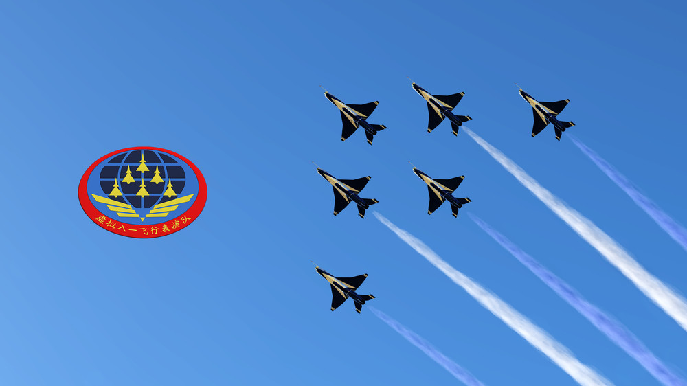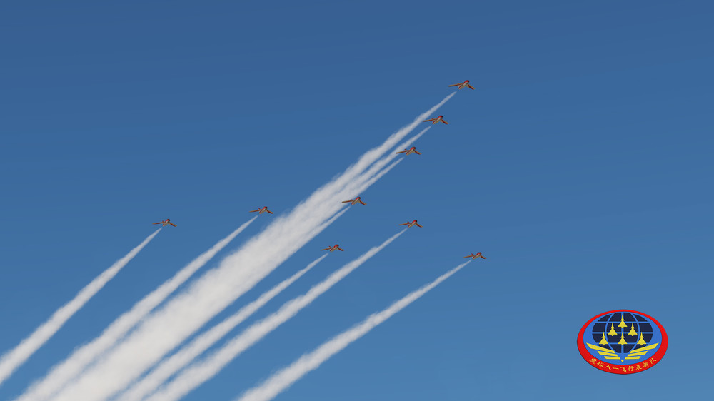 中国虚拟八一飞行表演队 China Virtual August 1st Air Demonstration Team 虚拟八一飞行表演队70周年国庆献礼 China Virtual August 1st celebrates the China National Day 70th Anniversary https://www.youtube.com/embed/n_moJy43Hr4 [YOUTUBE]https://www.youtube.com/embed/n_moJy43Hr4[/YOUTUBE] China Virtual August 1st Air Demonstration Team Founded in September 12, 2009, using flight software DCS World for flight performances. The purpose is to reenac the aerial demonstration of the Chinese Air Force Air Demonstration Team.The Demonstration aircraft is the J10AY,J10SY,J7EB,J7GB and J5 of the Chinese People's Liberation Army Air Force. E- mile:13409221@qq.com Other videos:https://www.youtube.com/channel/UCT2...Z3galnfU7mMq1w