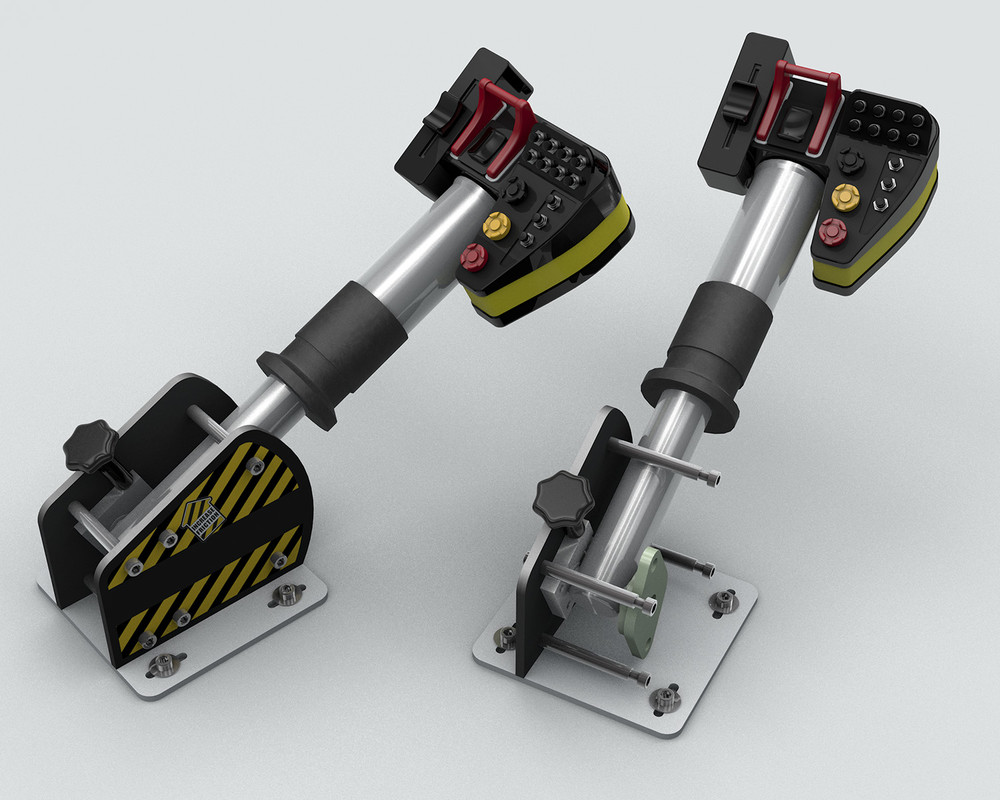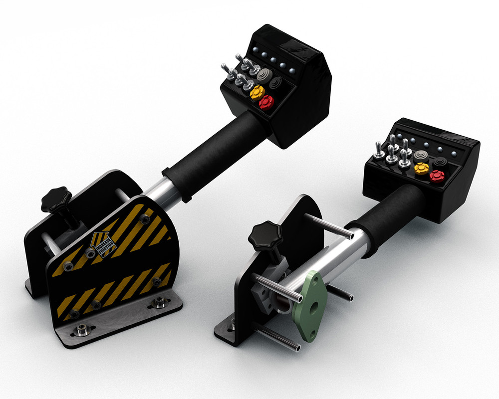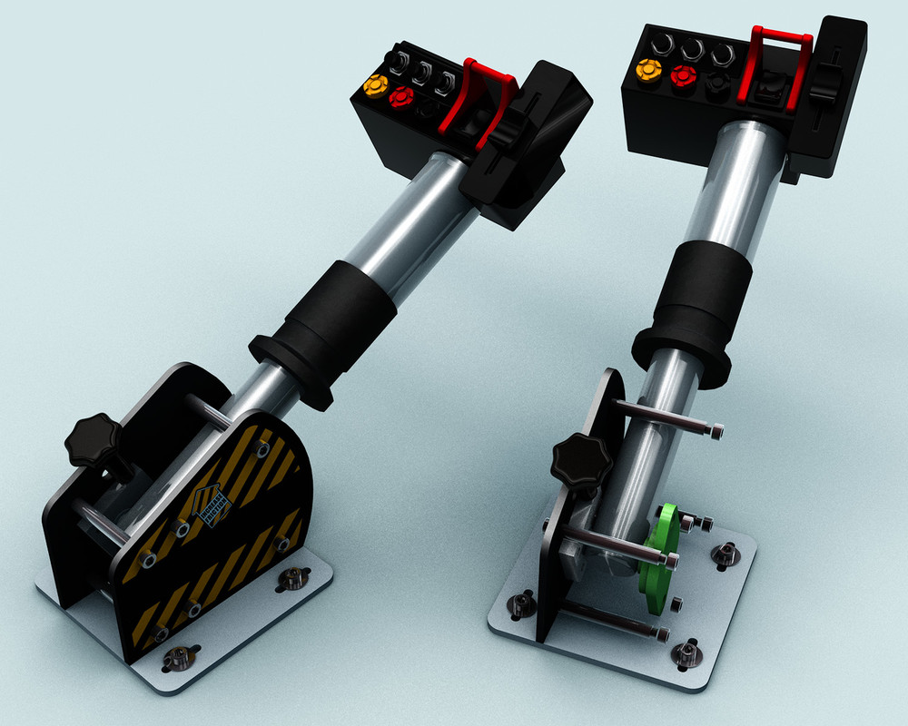 I rethought the construction and here is how it turned out for now. The Switchbox in the front is pure placeholder. Like mentioned i would love to have it look like the ones of the gazelle. This time the thing is modeled with correct measurements. Its overall length is around 40 cm and when the lever is pulled up its around 25 cm high. Wanted it to be compact so i can mount it to my office chair. Also the one in the gazelle is pretty compact as well. And BTW: Great work on the Gazelle. Having fun bigtime flying it. I am looking forward to the alternate weaponloadouts and multicrew in particular. I think this si where the gazelle will start to shine combat performance wise.