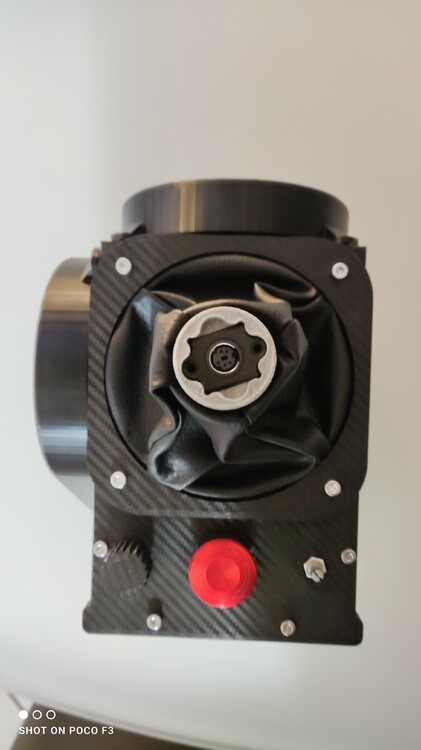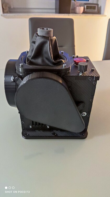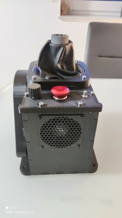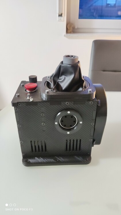Housing printed from PETG with Carbon fiber surface look. Gimbal is 2 part design just like Original Rhino. The upper threaded grip/extension connector is laser sintered from PA12. This is original VPForce 3D part that also is interchangeable with the Aluminium Upgrade connector from VPForce. The Grip connector is connected to the lower gimbal with a 20x20x3 aluminium profile. Motor and electronics are original VPForce Rhino components (DIY kit). PM if youre interested for details. Item location is Germany, Shipping is possible. EDIT: The missing potentiometer knob will be on there;) Simply forgot to stick it on for the pics;P