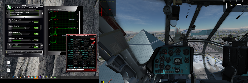 Нет, процессор еще не разгонял. Странная вещь повторно запустил(на тех же настройках что на скрине выше) и фпс стал ниже(55-59) для 12:00 но в то же время вырос(53-57) для 18:00... А еще я на Ми-8 не летаю и мне трудно поймать то же положение.