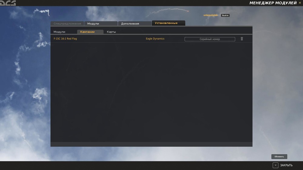 Активация, деактивация.. я запутался..unbreakable replied to SandMartin's topic in Покупка и Активация прошу подсказать, как деактивировать кампанию F-15C 16-2 Red Flag? В менеджере модулей нет нужной галочки, соответственно снять ее негде)...