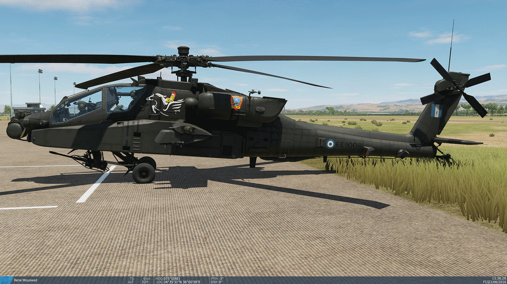 1 TEEP Elliniki Aeroporia Stratou 1st Helicopter Attack Battalion Hellenic Army Aviation Hellenic Air Force, Pegasus Apache Display Team, es1008. Based out of Stefanovikeio in Stefanovikion, Thessalí. BuNo 92-0493 This is a very unique paint job. The PADT flies most years at Athens Flying Week. This Liverie has darkened paint, custom decals, Pilot suit reworks, Patches, Custom pilot face, tires and roughmets. Was a fun project. This is v1.1 I will likely improve the Mounted Cavalry image in v1.2 https://www.digitalcombatsimulator.com/en/files/3321978/