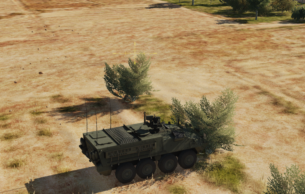 From today's 2.7.9.17830 Open Beta DCS: Persian Gulf Map by Eagle Dynamics Small bushes do not obstruct ground vehicles But they still do. Photo 1 - cannot get through this bush. The Stryker is a 30-ton vehicle and can absolutely crush something like that Photo 2 - totally stuck in this group of bushes. bushes on PG.trk -