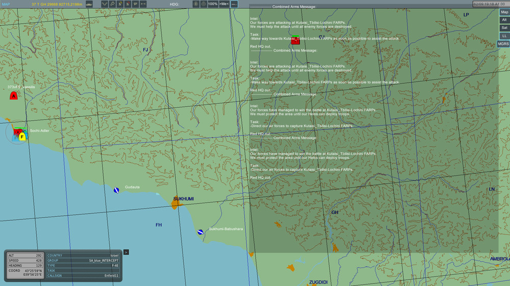 16. Thanks Falcon, we are reworking some of the messages and the time they are displayed. 1. It's a good idea, we might do PAKs info, for example you will have in the menu an option to select a intel on a specific PAK, once you select you would be able to see airbase/FARP/City info in that PAK, PAKs are shown in the buddyspike website. 2. Repair is done between 20-30 minutes for each group in any task (aerodrome/FARP/city).
