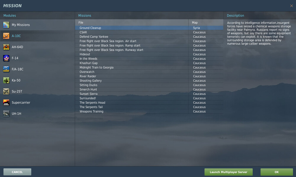 Thank you very much! But the question is really why there is no category in the menu? I prefer to put my own missions in the category for the respective module, instead of under "My Missions" - it is more convenient. So even if ED did not create specific missions for the A-10C, it would be nice to have the category. -