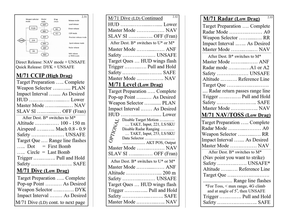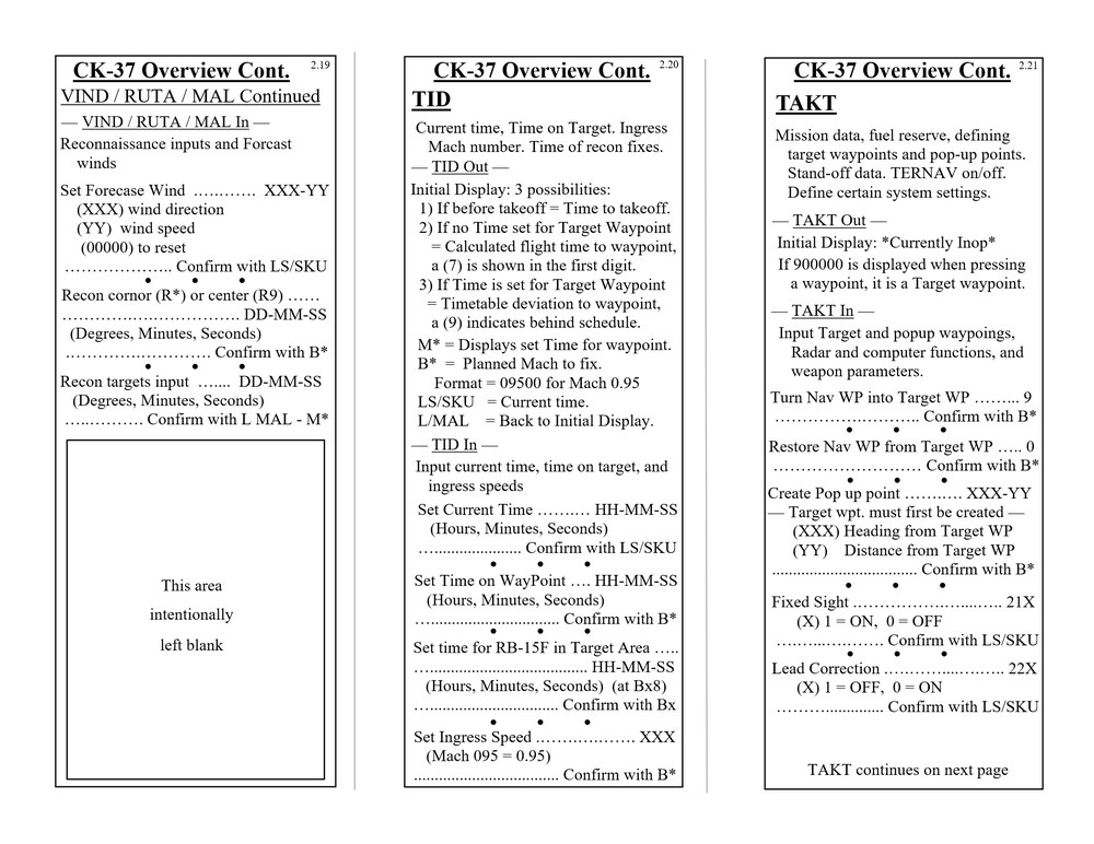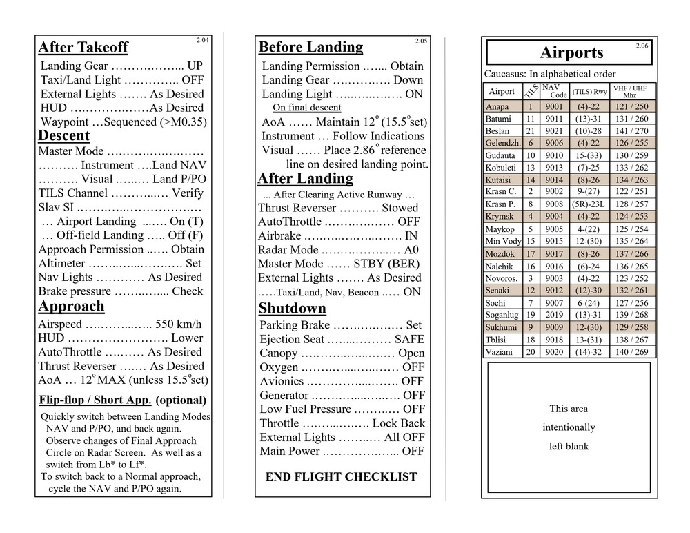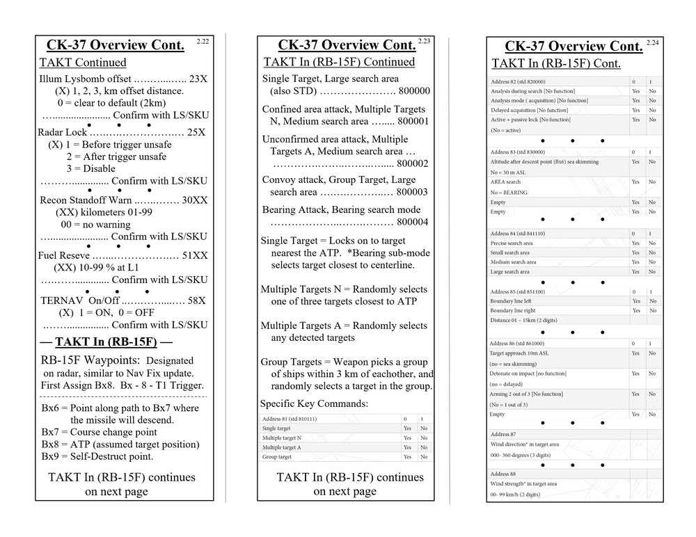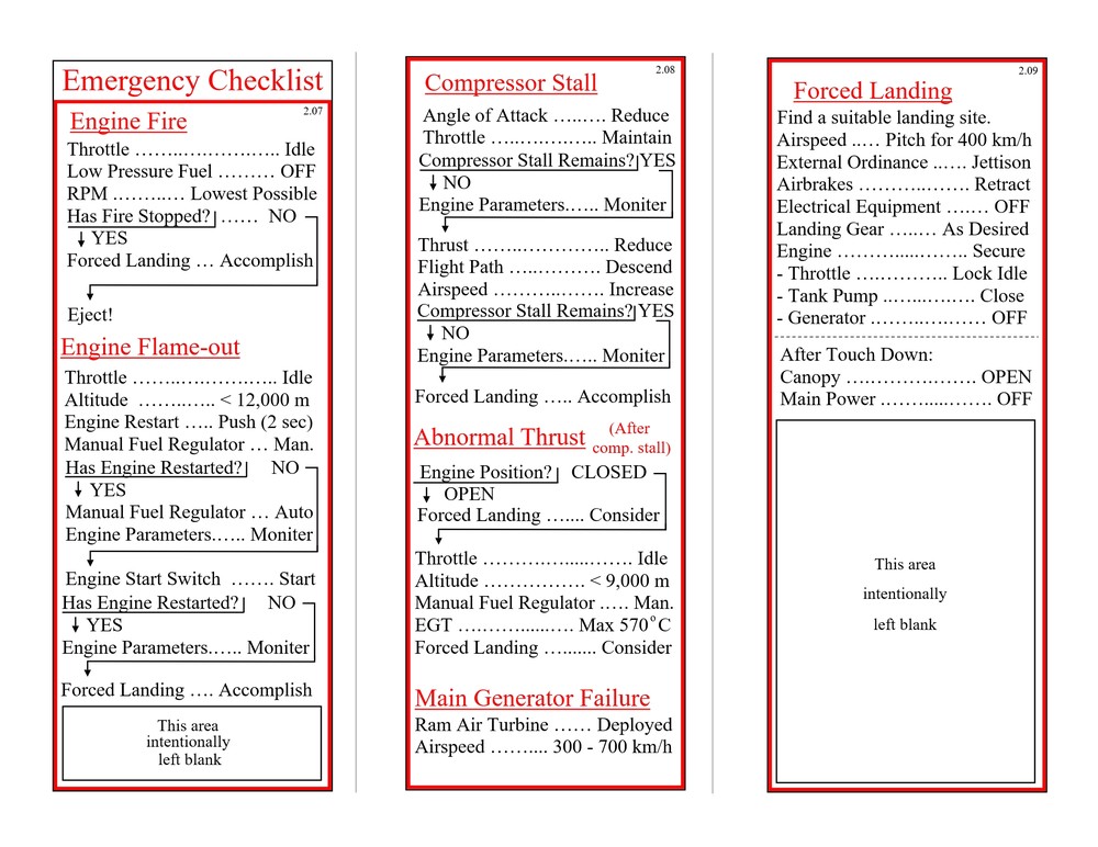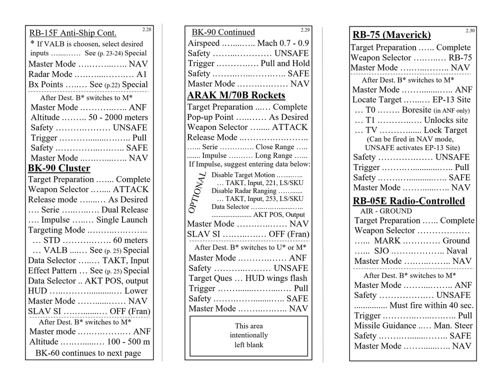 Hello everyone, Updated to VERSION 2 Binder edition I'd like to share with you the Checklist / Quick Reference guide that I created for the AJS-37 Viggen. Feel free to download them from the attachments below (scroll all the way down to the bottom of this first post. there's 12 pages in total), or by clicking the link above the sample pictures. That is a single PDF that contains all 12 pages. Those 3 pictures are what the pages look like. (shrunk down so they're not obnoxious). Here's the new Binder Addition! :book: (2 additional pics below) Link to the v2.0 binder edition here --> https://drive.google.com/open?id=0B8D9__Jf0wgITDRGWnlMdUJ2TGM I printed this at Staples and then cut off the access margin's. Total was $14.00 :disgust: But that included the binding, clear plastic front and black vinyl back. It was also printed on a more durable 110lb paper. I made these with the idea of having them printed, and not for the in-game kneeboard for VR. These are similar to my SU-25T and MiG-15 checklists. Version 1 was pretty much a monstrosity. Remove, delete, reformat, Do whatever you need to do to trash that garbage. haha. This version improves upon the old one in every way. Checklist that doesn't double up, or use non-existent commands. Better flow to the CK-37 portion. Weapons references are refined. etc. Again though, if there is anything that looks out of place, incorrect, or incomplete. I know my "Emergency" section is a little lacking, but I hope to elaborate more in that section in the future, and I still need more data on the Recon stuff, so that portion has a pretty large blank space set aside. Thank you everyone! Fisherman82 did a great job with converting the text of this Checklist/Quick Reference guide from English to Swedish! Here's the link to his post where you can find it: https://forums.eagle.ru/showpost.php?p=3139182&postcount=27 - Apache600 Google Drive link to the PDF file (so you don't have to download all 12 pages individually): https://drive.google.com/open?id=0B8D9__Jf0wgIeVUtUHZqTE4yb28