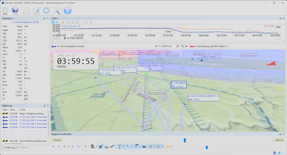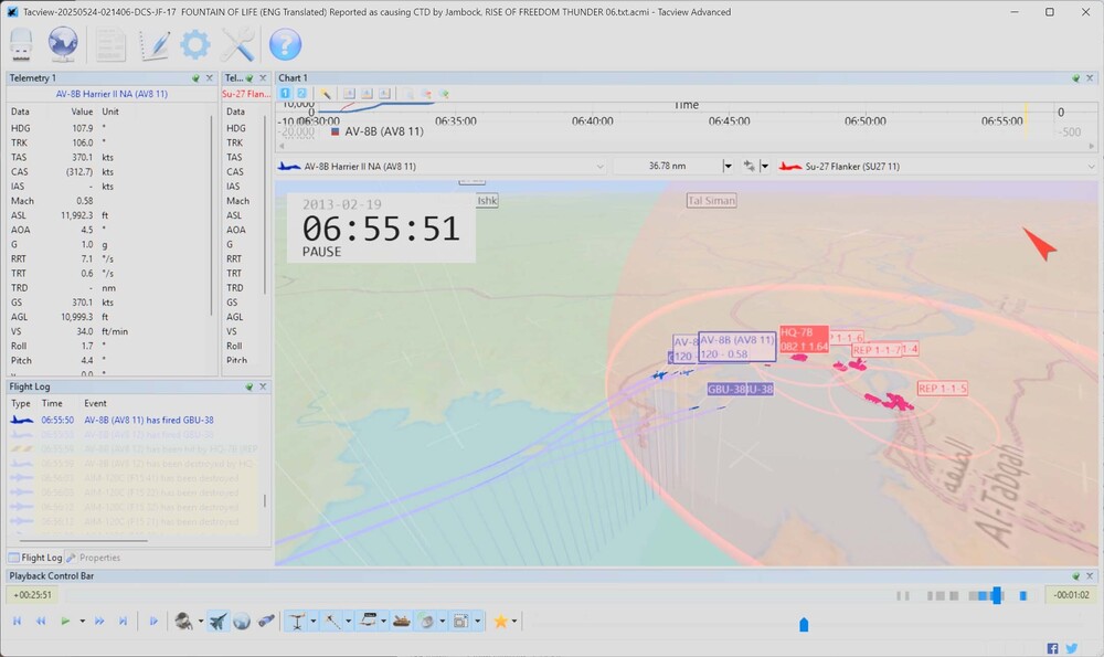 Attached are two of my own (the zip includes a track file). A few common lines in the log prior to the CTD. 2025-05-24 01:44:27.458 WARNING EFFECTS2 (Main): OParticleSystem: preset 'missile' not found in 'volumetricPointLight.lua', using default 2025-05-24 01:47:19.786 WARNING LOG (9368): 20 duplicate message(s) skipped. 2025-05-24 01:47:19.786 ERROR GRAPHICSVISTA (Main): Can't open model AV-8BNA-OBLOMOK-ELEVATOR-L. 2025-05-24 01:47:19.787 ERROR GRAPHICSVISTA (Main): Can't open model AV-8BNA-OBLOMOK-ELEVATOR-R. 2025-05-24 01:48:14.306 INFO EDCORE (Main): try to write dump information 2025-05-24 01:48:14.641 INFO EDCORE (Main): # -------------- 20250524-014815 -------------- 2025-05-24 01:48:14.642 INFO EDCORE (Main): DCS/2.9.16.10523 (x86_64; MT; Windows NT 10.0.26100) 2025-05-24 01:48:14.643 INFO EDCORE (Main): H:\Steam Library NVMe\steamapps\common\DCSWorld\bin\DCS.exe 2025-05-24 01:48:14.644 INFO EDCORE (Main): # C0000005 ACCESS_VIOLATION at 00007ff6cb3836f3 00:00000000 2025-05-24 01:48:14.645 INFO EDCORE (Main): SymInit: Symbol-SearchPath: 'H:\Steam Library NVMe\steamapps\common\DCSWorld\bin;', symOptions: 532, UserName: 'Ramsay' 2025-05-24 01:48:14.646 INFO EDCORE (Main): OS-Version: 10.0.26100 () 0x100-0x1 2025-05-24 01:48:14.647 INFO EDCORE (Main): 0x00000000007b36f3 (DCS): SW + 0x19BC73 2025-05-24 01:48:14.648 INFO EDCORE (Main): 0x000000000078bd6a (DCS): SW + 0x1742EA 2025-05-24 01:48:14.649 INFO EDCORE (Main): 0x000000000071285f (DCS): SW + 0xFADDF 2025-05-24 01:48:14.650 INFO EDCORE (Main): 0x000000000000461b (World): wSimTrace::CommandsTraceDiscreteIsOn + 0x3EB 2025-05-24 01:48:14.651 INFO EDCORE (Main): 0x0000000000004c42 (World): wSimCalendar::DoActionsUntil + 0x262 2025-05-24 01:48:14.651 INFO EDCORE (Main): 0x0000000000a4eeba (DCS): SW + 0x43743A 2025-05-24 01:48:14.651 INFO EDCORE (Main): 0x0000000000a4eb91 (DCS): SW + 0x437111 2025-05-24 01:48:14.651 INFO EDCORE (Main): 0x0000000000a74032 (DCS): SW + 0x45C5B2 2025-05-24 01:48:14.651 INFO EDCORE (Main): 0x0000000000a28d04 (DCS): SW + 0x411284 2025-05-24 01:48:14.651 INFO EDCORE (Main): 0x0000000000a2a3c3 (DCS): SW + 0x412943 2025-05-24 01:48:14.652 INFO EDCORE (Main): 0x00000000025abc5f (DCS): AmdPowerXpressRequestHighPerformance + 0x10C0C5B 2025-05-24 01:48:14.652 INFO EDCORE (Main): 0x00000000010ad99e (DCS): SW + 0xA95F1E 2025-05-24 01:48:14.652 INFO EDCORE (Main): 0x000000000002e8d7 (KERNEL32): BaseThreadInitThunk + 0x17 2025-05-24 01:48:15.413 INFO EDCORE (Main): Minidump created. 2025-05-24 01:48:15.413 INFO Lua::Config (Main): stack traceback: 2025-05-24 01:48:15.419 WARNING LOG (9368): 3 duplicate message(s) skipped. I tested the original Portuguese .miz and also an edited version with English text - the track file has a lot of wasted time (on the runway) as I refamiliarised myself with the JF-17 / assigned control bindings, however it does CTD on replay in the current version of DCS 2.9.16.10523, so should serve it's purpose. Looks like the CTD may be related to the HQ-7 shooting down an AI AV-8B ? dcs.log-20250524-0248.log dcs.log-20250524-014815.zip