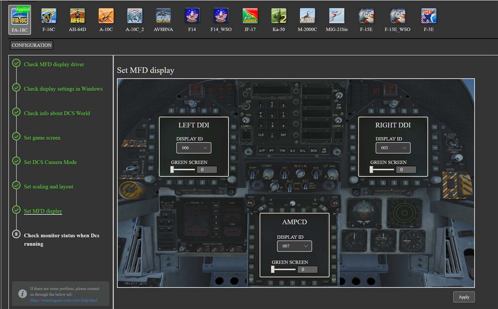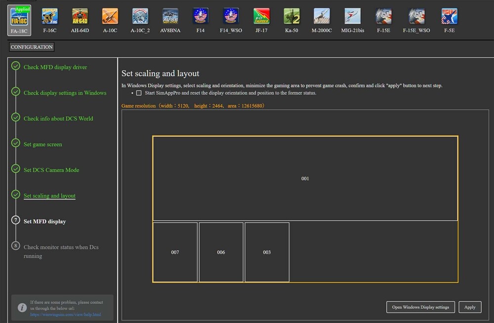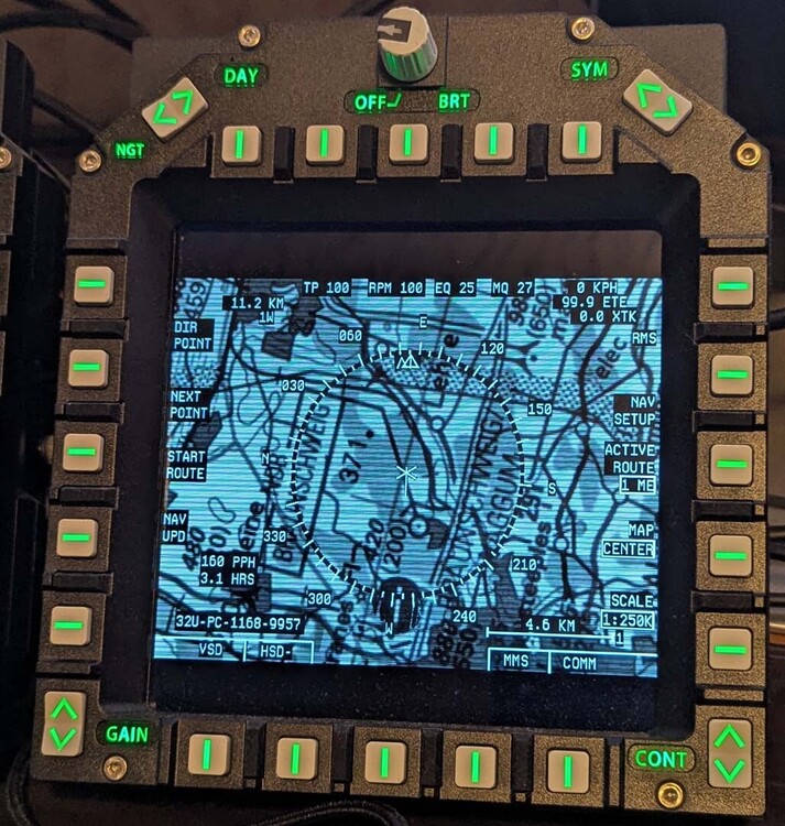 The Kiowa MFD's (LEFT_MFCD and RIGHT_MFCD) will export (with a stretched ratio) using most? SimAppPro display profiles i.e. A-10C, F-16C, F/A-18C or similar. TL;DR: https://forum.dcs.world/topic/371974-radar-on-an-mfd/#findComment-5632094 Detail: Here is a Kiowa example using the WinWing F/A-18C profile. Monitor setup F/A-18C Cockpit Profile (CENTER_MFCD, LEFT_MFCD and RIGHT_MFCD) DCS Kiowa export to WinWing MFD's Copying WinWing's Export .lua ("DCS World\Config\MonitorSetup\wwtMonitor.lua") to "Saved Games\DCS\Config\MonitorSetup", allows the exported displays to be adjusted to a 3:4 ratio (the HSI, etc. isn't stretched but instead has black bars top and bottom). Custom Export .lua (positions require adjusting to fit your own monitor resolutions/arrangement) _ = function(p) return p; end; name = _('OH-58D_3xMFD_4x3_Aspect'); Description = 'Custom positions and sizes for 3x Winwing MFD.' --created 2025-04-10, Exported Displays given 4x3 Aspect, RB Viewports = { Center = { x = 0; y = 0; width = 5120; height = 1440; aspect = 3.5555555555555554; --32/9 } } UIMainView = Viewports.Center GU_MAIN_VIEWPORT = Viewports.Center --L2MUMS is mapped to CENTER_MFCD (and permamently displayed) CENTER_MFCD = { x = 8; -- 0+8 offset y = 1794; -- 1440+256 offset +20 for Kiowa +78 to centre width = 752; -- 768 - (8+8) height = 576; -- 4x3 aspect for Kiowa (was 732) } --Custom MFD sizes and positions to fit inside button bevels. LEFT_MFCD = { x = 776; --768+8 offset y = 1794; -- 1440+256 offset +20 for Kiowa +78 to centre width = 752; -- 768 - (8+8) height = 576; -- 4x3 aspect for Kiowa (was 732) } RIGHT_MFCD = { x = 1544; --(768x2)+8 offset y = 1794; -- 1440+256 offset +20 for Kiowa +78 to centre width = 752; -- 768 - (8+8) height = 576; -- 4x3 aspect for Kiowa (was 732) } More detail on viewport exporting can be found in this excellent Export FAQ OH-58D_Monitor(4x3MFDAspect).lua