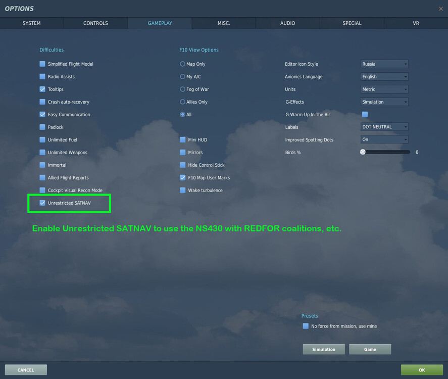 Your Mi-8 REDFOR Iraq mission works for me. Looking at the "options" file inside your "test.trk", unrestrictedSATNAV = false You will need to set unrestrictedSATNAV in DCS > Options > Gameplay to use the NS430 in a REDFOR coalition. Tested using DCS 2.9.10.4160 IIRC it does if the REDFOR coalition doesn't already include a nation (USA, etc. ?) that uses western (NATO ?) GPS. Either way "unrestrictedSATNAV = false" is the reason YoYo's NS430 isn't working in his Mi-8. -