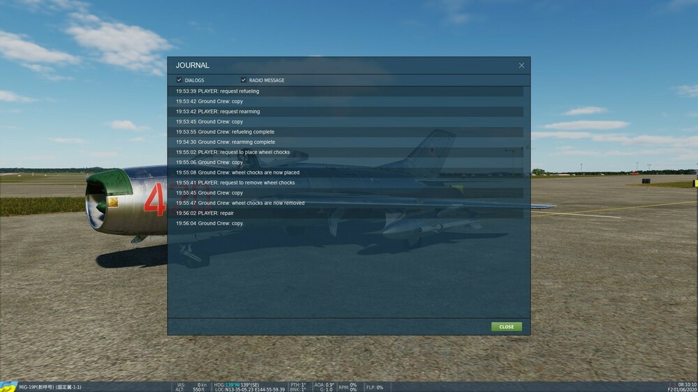 What makes you think you've damaged your MiG-19, when I watch your replay - the ground crew rearm and place/remove wheel chocks as requested. They also acknowledge your repair request with a "copy", AFAIK when there's no repair timer, there's nothing to repair.
