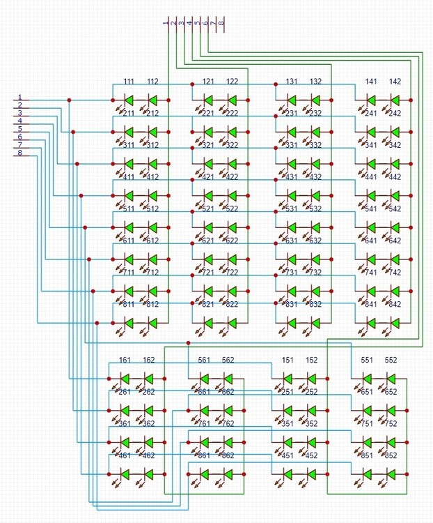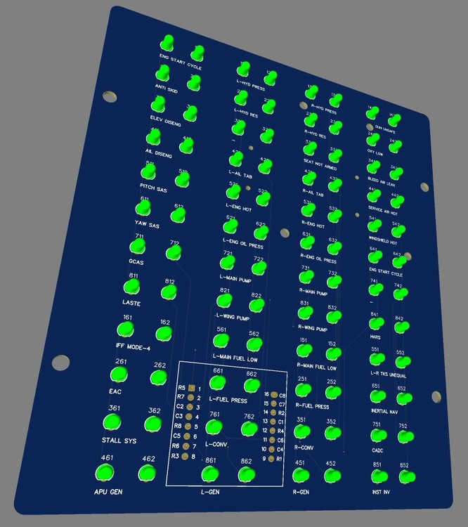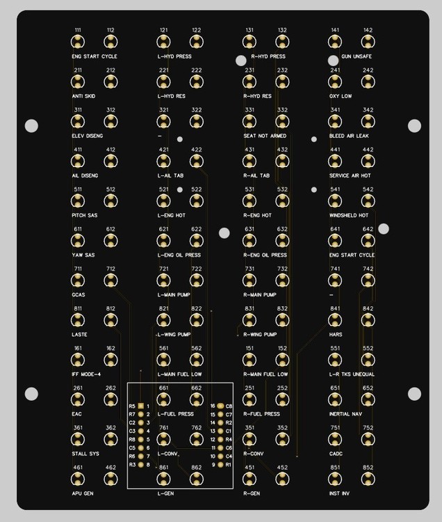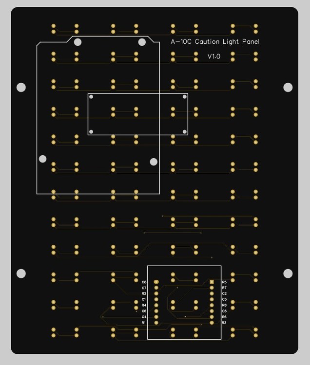 Hello! I've decided to make a caution light panel for the A-10, I want to build a PCB (because I never have before and it looks fun). Using the worthog project's files I have the LED placement for each diode and also the holes that hold the panel standoffs. I've seen craigs sim put and others mention the MAX7219 and luckily I have a matrix module already. The matrix I want to build is 6x8 (6 cols/8 rows). In testing a random 3mm green LED it's bright on it's own but dim when in series. My question to this lovely forum, is what resistor should I use in the RSET module in the MAX7219? Note: I know very very little about voltage/ohms etc (also being colorblind resistors are a nightmare anyway). Here's a few shots of what I've learned from using easyeda over the past few days... Any help much appreciated!