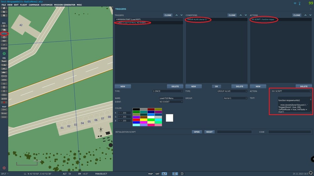 14. Ah, you mean the MIST script that is added to the mission? You can just download it from the link I shared from page 1. Then add it under Triggers with a event "MISSION START" and a "DO SCRIPT FILE". The install instructions are included. (Just open my mission in the Mission editor and look how it is added) Or download it directly from here: https://github.com/mrSkortch/MissionScriptingTools/releases If you want to get the script file out of my mission, you can just change the .Miz file I added and change the extention to .zip (it's just a zip file, so it has the name "Test-RespawnUnits-RadioMenu3.zip") and get it from the mission there. Then add it as described above.