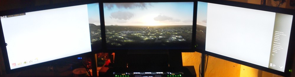 Hi! Also: Teile alle da und es funktioniert auch schon langsam wieder alles... da muss man aber vorher erst mal mühselig herausfinden, wie man alles anschliesst (mini Displayportanschlüsse müssen BEIDE "aktiv" sein, wenn HDMI angeschlossen, funktioniert nur ein DVI, usw...) Es war auch ein kleiner Kampf meine USB-Monitore wieder zum funktionieren zu überreden... aber jetzt gehts. Die neue Grafikkarte ist der absolute Hammer und funktioniert gut mit meinem System zusammen :-) Jetzt aber wieder ein neues Problem: Ich habe mir vor langer Zeit die Sicht irgendwo so umgestellt, dass ich, bei geradem Blick, quasi nur aus dem vorderen kleinen Fenster rausschaue (siehe Bild). Ganz einfach deshalb, weil ich den Monitor soweit entfernt habe, dass für mich halbwegs real rüberkommt und es mit meinem restlichen Helios-Panel und dem UFC zusammen passt. Mit dieser Einstellung ist das neue 5760x1080er Bild komplett verzerrt... Könnt ihr mir sagen welche Werte ich ändern muss um nun wieder meine ursprüngliche sicht zu haben, aber diesmal einfach nur "breiter", also einfach links und rechts mehr sehe? Geht das? LG, Harry