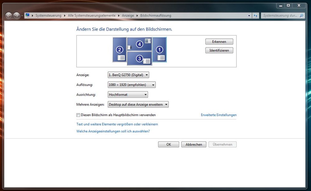 Hey Guys! I use four 27" 1920x1080 monitors. 3 of them are the same (left/top/right), the lower middle touchscreen is physically wider. but also 1920x1080 So i'm having a misalignment with the other three screens... look here: my view in front of the screens / screenshot view: windows setting / softTh setting: Is there a chance to get this corrected by software? Well... its not that bad... but not perfect. and i know that if i would "shrink" the wideness from the lower middle monitor it would visually overlap a bit with the two outer screens... any help is appreciated! :thumbup: