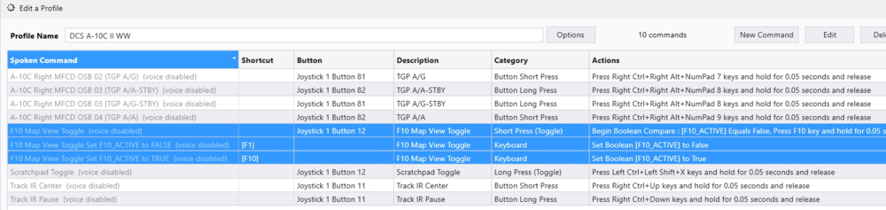 I used VoiceAttack to create an F10 map toggle mapped to a single button on my throttle. It just alternates between button presses of F1 and F10 on each press. Sometimes I have to press it twice when I first start a mission but otherwise it works mostly perfect. I added some state switches in case I press the actual F1 or F10 keys to change view instead of the HOTAS button at any point. The only flaw is if you use F1 or F10 to activate a radio or command menu option it doesn't know it wasn't a view command so the toggle gets out of sync. Pressing it twice resolves it. So three commands in all to make it work. I love it! VoiceAttack is awesome by the way! -