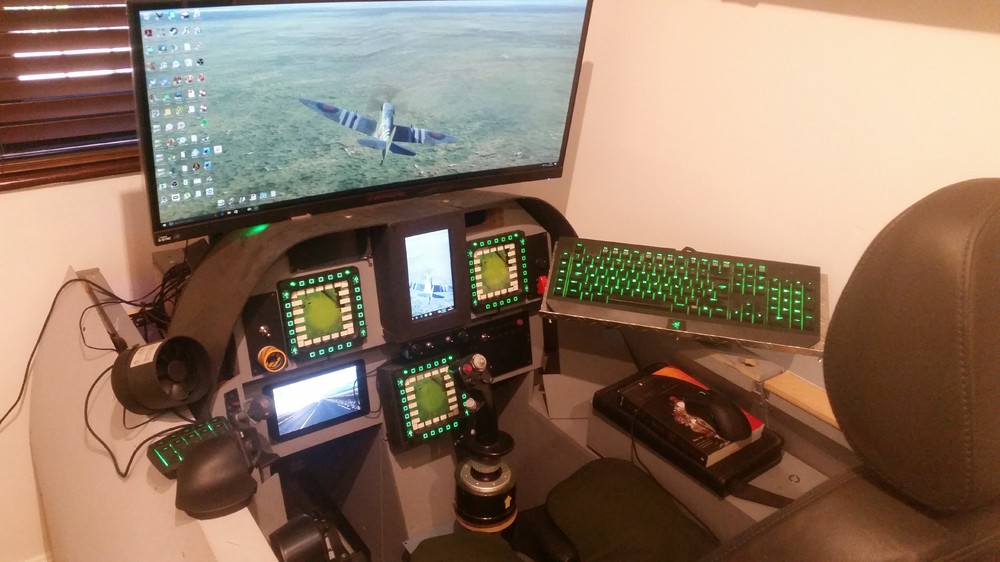 Pit - Update Been a while but I've been enjoying the pit and slowly adding to it. Since the last post I've added the following features: LeoBodnar boards x2 Retractable Mouse platform (right knee) Keyboard mount Viggen Data Panel (bottom right of front panel) Master Arm/Spin Recovery switch (next to the roght MFD) Rotary encoder above master Arm for manual QFE settings 2xRotaries and two switches (on off on) below center lilliput screen for Viggen QFEs/HUDs/various bindings on different aircraft Mater Arm/Jettison Stores switch (Left of LEFT MFD) Raspberry PI+touch screen Tornado undercarriage switch (left knee) Viggen thrust reverser pull switch Prototype Jetseat from Andre Configured Helios for Viggen screen bindings To do: Create a proper seat mount which is adjustable or build a new seat from scratch and ditch the Audi seat. Cockpit flood lighting Folding wings handle Radio Rotaries Tail hook lever A10 CDU Aircon - yes air con or fans - will get some louvres for the two holes currently covered by panels at the top of the front console and feed some pipes/fans and ducting then map to switches in the pit. Currently working on making a Harrier Nozzle lever so working MDTDarkEagle aka Tin Tin from 9th Shrek Squadron. Need to re do the upper side panels and paint as a few hacks at some other ideas didn't go as planned.