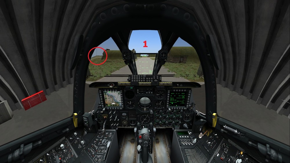 I'm gonna try and explain what i would like to change here and see if anyone understands. I've just started messing with 3 screen setup for DCS and here is the thing. In the pic marked "1" we have the default cockpit view which is as everyone knows, half panel and half window if i can put it like that. In this view i've put a red circle around the problem. The horizon is angled there. Now on the other pic marked "2" the line is straight in the same spot as i've shifted the view up a bit to more of a window view. This i guess is correct in a way since we in that view look horizontally straight ahead so therefore the horizon should be straight. Now i would like to have the horizon straight in the default view since that is the view i like to use, EVEN if its not kind of correct. Note that i've read a bit in PeteP's docs about similar stuff and my bezel's have been adjusted a little, but does anyone know if this can be changed in a easy way either by means of the lua files for cameras etc. or som other way?
