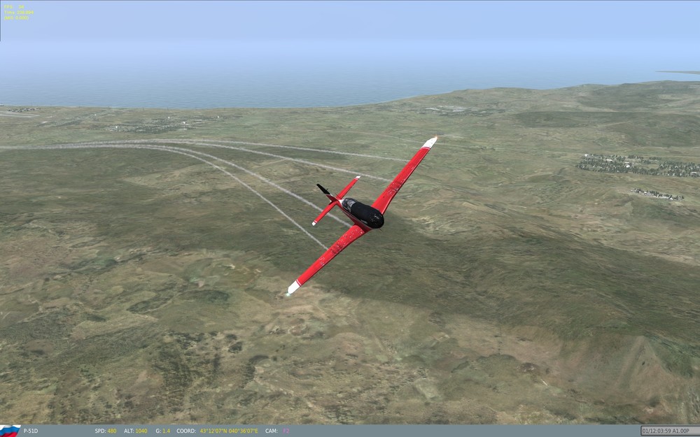 Попробовал штопорпо предложенной ivan_sch методике при заправке 68%, результат следующий: При убранном наддуве левый и правый штопор по методике ввода в штопор и поведении не отличаются, на 4 витка и вывод потратил 5 тысяч футов высоты (ввод 6000, вывод из пике 1000, наддув не увеличивал). При штопоре в режиме 46/2700 пытался держать вертикальную 3000-4000 фут/мин, по достижении 100 миль/час не выводя в горизонт давал педаль. Правый штопор меньше чем за пол оборота переходил в левый. Угловая скорость вращения на газу по ощущениям выше, самолет выходит из штопора неохотнее, чем при убранном наддуве. Пара общих моментов - нос задирает выше горизонта только на первом витке, останов вращения происходит меньше, чем за один виток. П.С. Ща перекурю и попробую с 100% заправкой и баками. Кстати, можно еще 6 ракет подвесить для массы. -