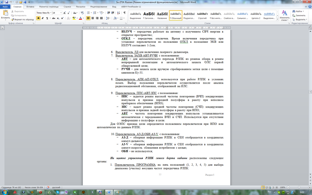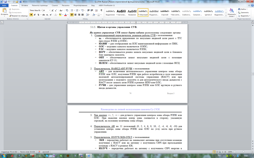 Вообще, если уже по РЛЭ пошли, то: 2. Переключатель НАВЕД АВТ-РУЧН с положениями: − АВТ – для включения автоматического управления центром зоны обзора РЛПК или ОЛС, излучения РЛПК при работе истребителя в поле наведения наземной автоматизированной системы управления (НАСУ) или при целеуказании с ведущего самолёта и для автоматического ввода дальности с НАСУ после захвата цели РЛПК в режиме НПО или ОЛС; − РУЧН – для управления центром зоны РЛПК или ОЛС вручную и ручного ввода дальности. 7. Выключатель ЗАХВ АВТ-РУЧН с положениями: − АВТ – для автоматического перехода РЛПК из режима обзора в режим непрерывной пеленгации и автоматического захвата ОЛС первой обнаруженной цели; − РУЧН – для захвата цели вручную стробированием метки цели с помощью кнюппеля Ку-31. Если так, то почему только Фка может сканировать всё пространство, а на СУшке и МиГе надо зону сканирования двигать вручную? Пункт два гласит о двойном режиме использования сканирования пространства, а нам сказали, что такого на СУшке и МиГе не будет. А Вы, уважаемый, с облаков то спуститесь этак на 4000-5000 метров, а то хорошо кидать 120ки, когда их так сделали, что ни берёзой не слышно и уйти не возможно практически, особенно от 120С. А уж если Фка не на 10000-15000 метров, тогда и разговор другой. Чё эти Фки над горами щёлкают одну за одной? А то привыкли с 50-70 км закидывать 120ку в ТВС и драпать. Ни чего личного не имею против пользователя Shu_her, я не АС, что бы кого-то обвинять, просто обобщил для Фки и русской техники в общих чертах для реализации этих самолётов на данный момент в игре.