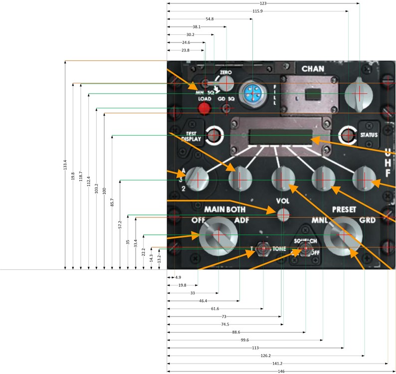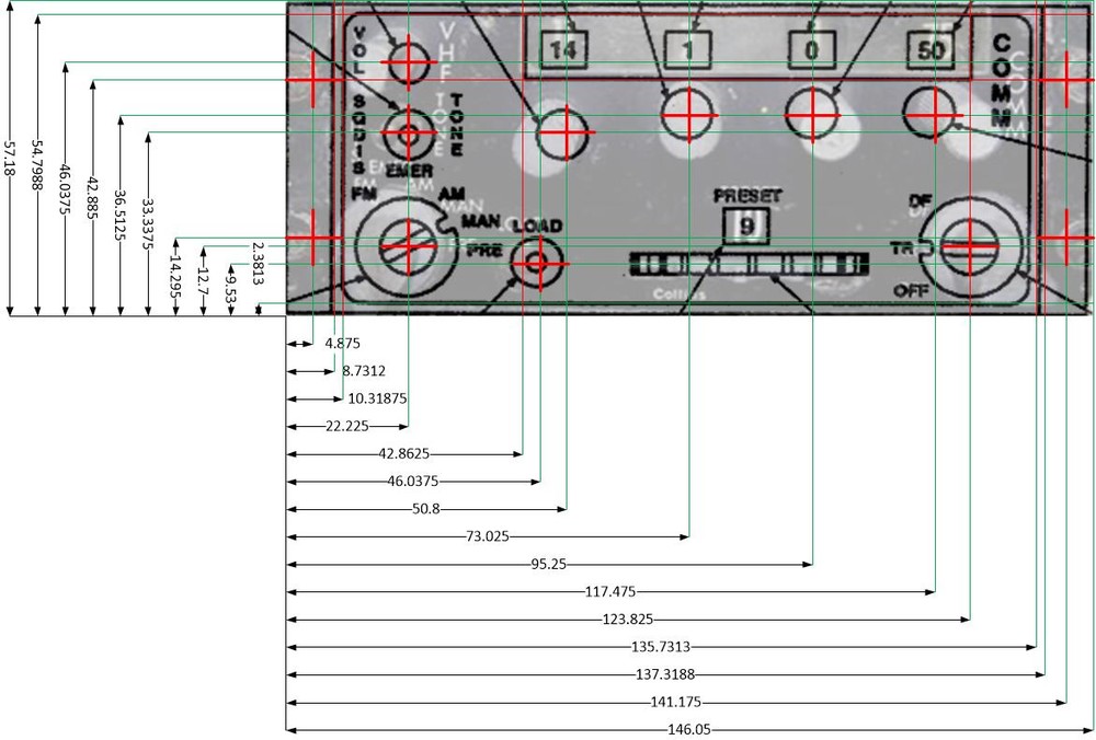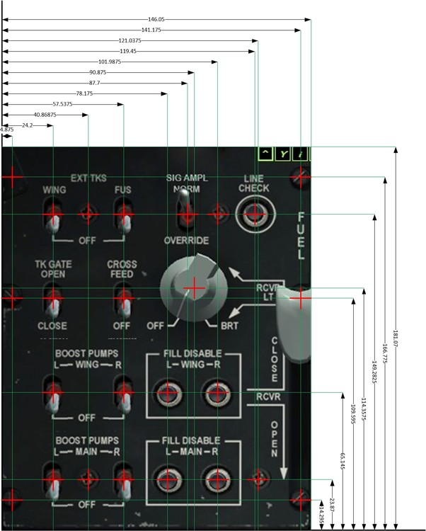 Here is my take on the Fuel Control Panel dimensions. I have left the dimensions in metric because that is what I am more comfortable with. Because they come from inches, the number of decimal places is a bit crazy but I kept them that way for ease of conversion. These dimensions are not taken from a real panel so they aren't guaranteed to be perfect. This will probably go for all of my dimensions throughout the build.