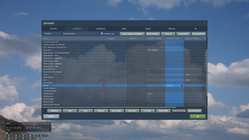 Naqua11, iv done all that, iv reset the bindings, tried manually deleted everything then set it all up again, still happens, so fat creason you say its probably a DCS bug but you dont know, so you also dont know if you have control over the issue, it only happens with the F14, looking around google a lot of people are having the same or similar issue with the rudder binding on the F14.