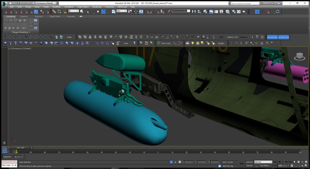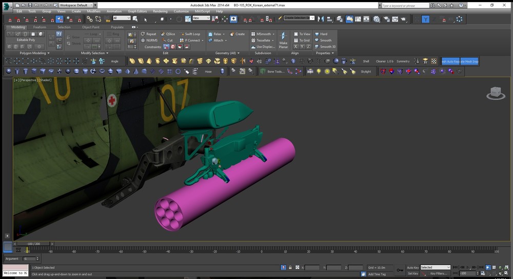 Hi Simmers, got 2 days to model additional weapons for the BO-105: 12.7 mm Gunpod, M260 Rocket Launcher and Flare Dispensers. Pylon and Carrier are also changed to fit it to the real thing :)