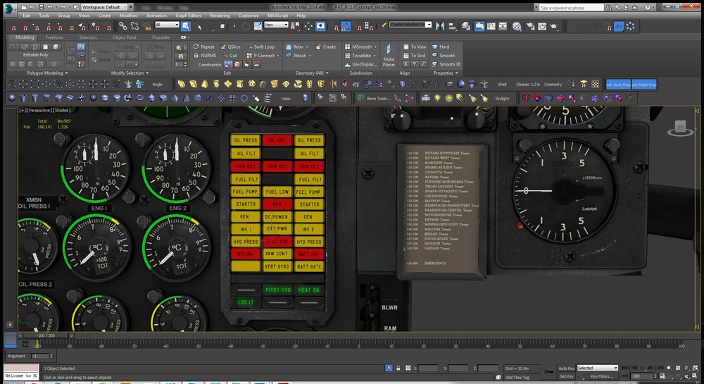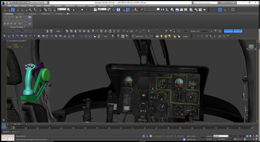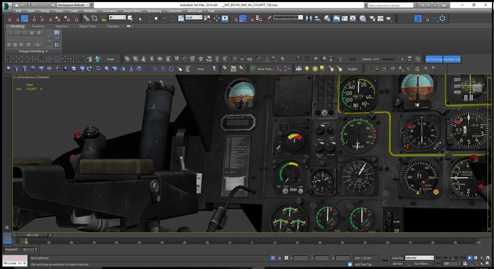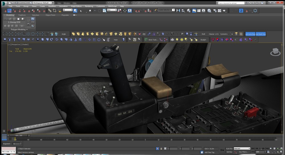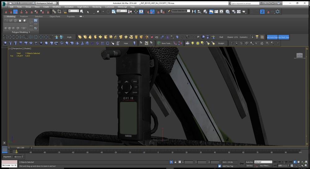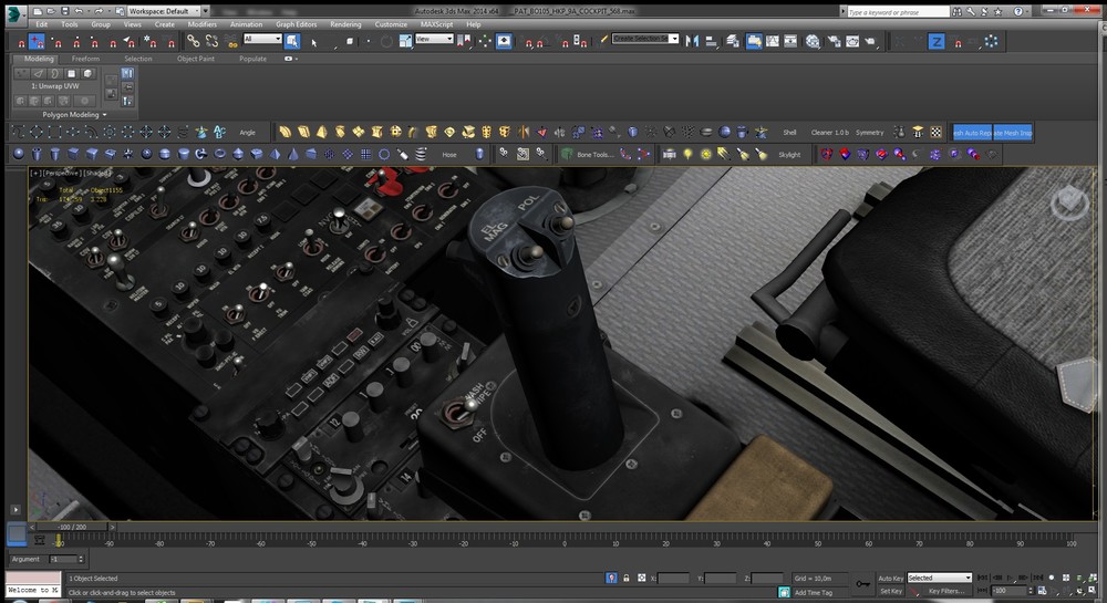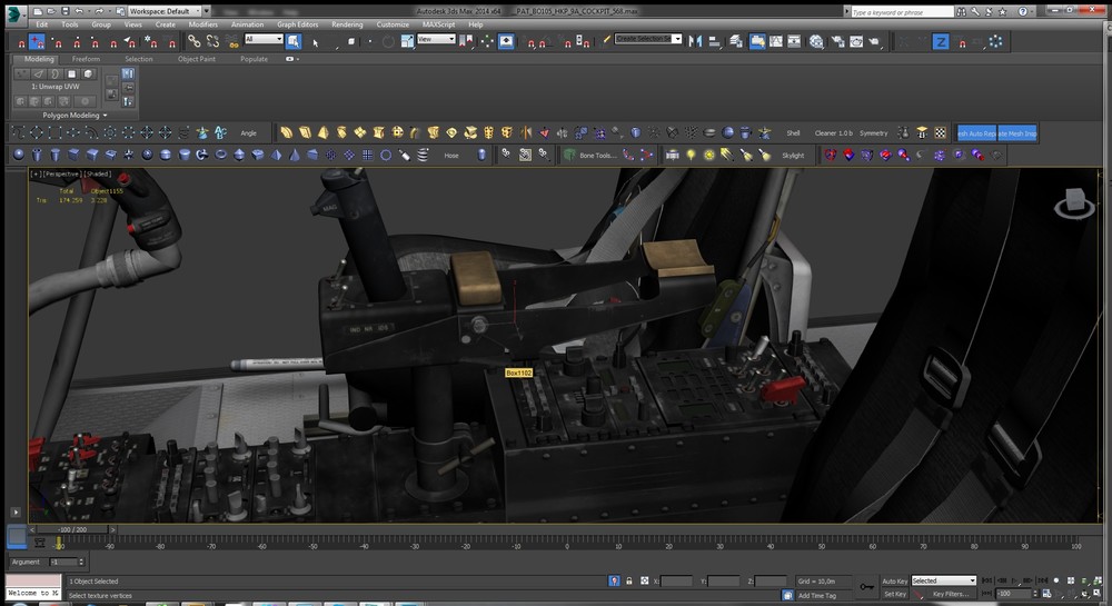 Centerconsole of the BO-105 HKP-9A with HELITOW Control unit/Armrest is done. Just the Roof-Console, the Optics and the Firing Stick (at the LH Strut) left to model/texture...