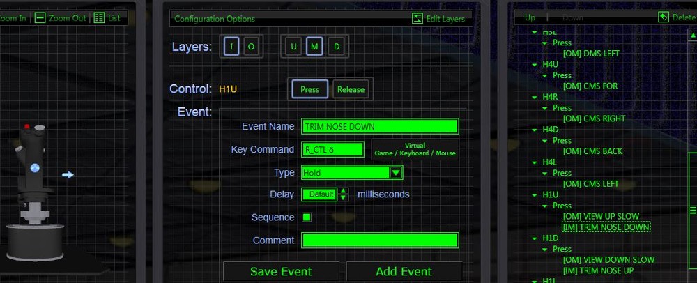 I tried to make a combination of the RCTRL ; with the S4 button as a layer for "trim nose down" and on the virtual keyboard instead of the ;key,there is the 'ο' key and many other.So when i try to run the profile the only button that works is the RCTRL button.There are some photos below to help you understand what i mean.