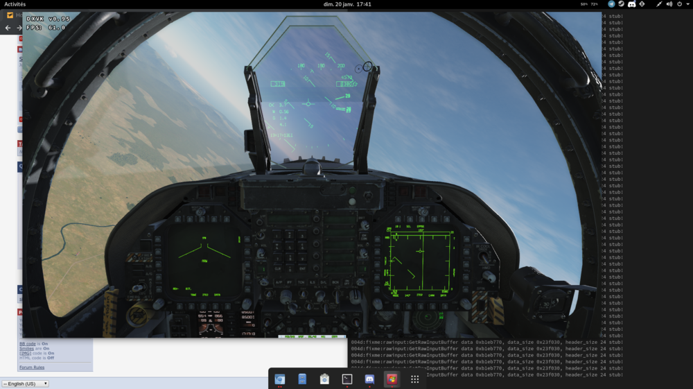 I have now a fully working DCS on linux with this prefix setup (my system is archlinux with nv drivers 415.27) : - tkg-protonified-3.21 (from lutris), with corefonts and vcrun2015 (wine-staging 4.0 will work too, but linuxtrack doesn't work yet on this version) - dxvk 0.95 - trackir with linuxtrack 0.99.18 - addons seems to work, either keyless or with starforce (I could run the F18 and the A10C) Framerate is fine, always 50 to 70 fps on high settings (my setup is i5 4590k + gf 1070, 16GB ram) Issues : - Opening F10 map always crash the game. - I don't manage to use some keys like RAlt (could be specific to my locale) - If terrain doesn't render (you only see static buildings and trees above water), try setting MSAA option to 4x (when I lower this setting, I lose terrain rendering) - If you have no sound, your may be missing libavcodec.so.57 and libavutil.so.55 (on archlinux install ffmpeg-compat-57) edit: I'm still having terrain rendering issues, seems to not always be linked to MSAA setting, so I'm not sure how to fix that then.. a wine/dxvk professional should help me :)
