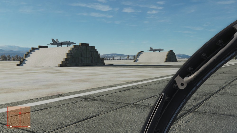 В миссии быстрого старта "ВПУ и УР AIM-9 Sidewinder" на аэродроме Кутаиси можно увидеть статики F/A-18 не внутри ангаров, а на них.