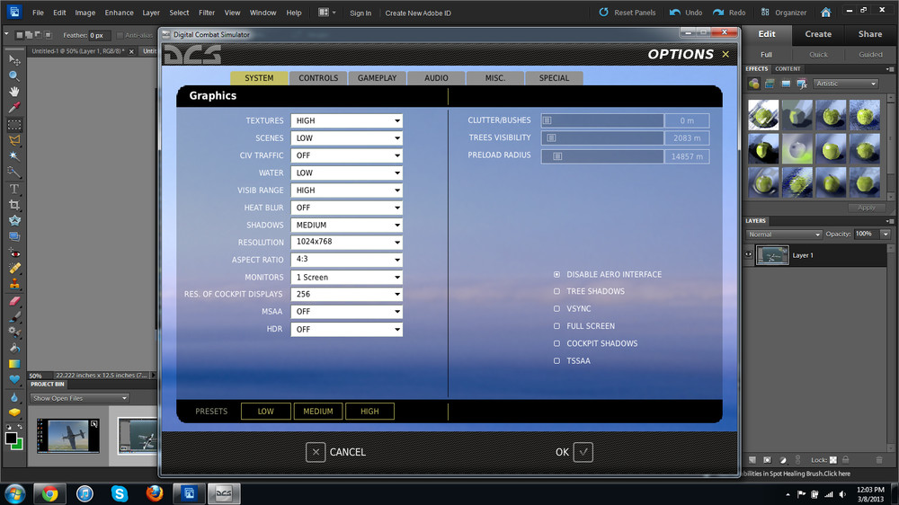 Hi all I'm new to DCS world. And my friend asked me to join him in this sim.. but I've been having a couple issues ranging from terrible performances (though my laptop has some power especially concidering how the game looks) which I don't have on Cliffs of Dover, to other glitches. And most importantly... I can see the plane's insides from every angles except directly up or down wether I m using the P51 or the Su25T. Here's my laptop's specifications: Alienware m17x R3: Intel® Core™ i7 2760QM, Kingston 8GB DDR3 1600MHz, 1.5GB GDDR5 NVIDIA GeForce GTX 560M, 17.3-inch WideHD+ 1600 x 900 60Hz WLED, Win7 pro 64bit, Crucial M4 256GB ©, 500GB 7200rpm (D) Yes, I am on 314.07 drivers for nvidia. Any help is appreciated :( thanks in advance! EDIT: SOLVED !!! http://forums.eagle.ru/showthread.php?t=98876 I shamefully missed that thread -_- .... as it turns out the intel wanted to go ahead and run the game instead of the nvidia. game seems to run more than fine now :)