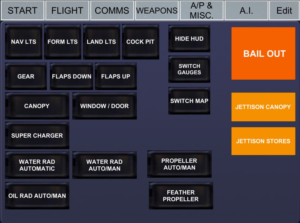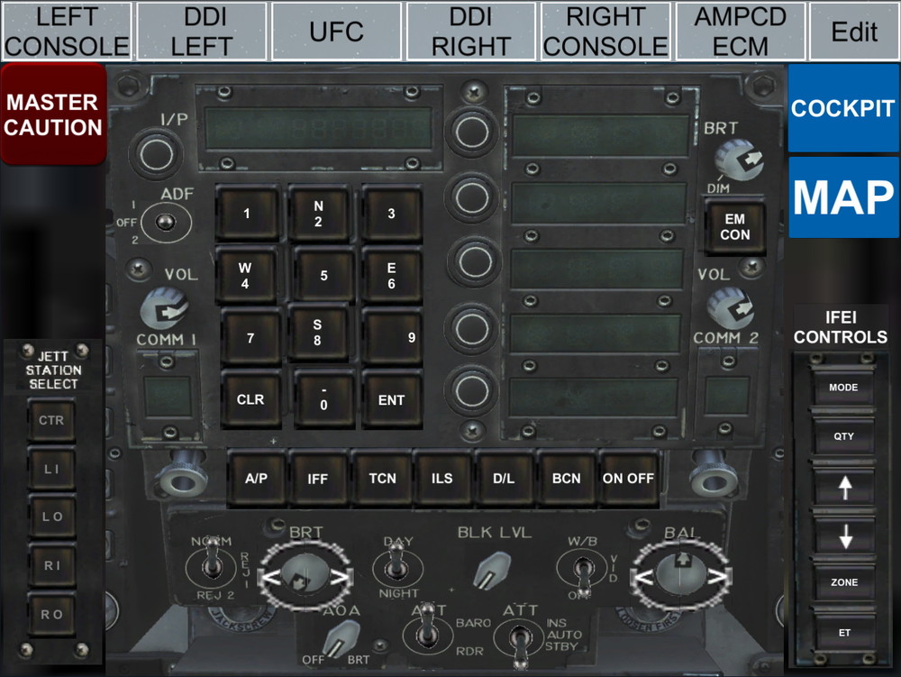 I simply meant that I primarily fly the FA-18C which is why I bought it (I needed a new stick anyway). I don't use modifiers in the way you do. My memory won't cope with it! :) To do other comands I have the Warthog throttle configured for the FA-18C and a few other aircraft with custom overlays although there's a lot of commonality so I usually just remember what does what. For anything else I used to use the CH Control manager (24 buttons) with a separate legend sheet for each aircraft but that meant faffing about with legend sheets if I changed aircraft so I am now using a 10 inch Tablet (touch screen) and the LEA Extended Input App (see attached). It means building a different set of images with touch-screen commands for each a/c but it gives me touch controls instead of reaching for the mouse in the cockpit and is easy to switch aircraft by selecting a different profile. It takes some time to build them but that's ok, I like that sort of thing. So far I have only the FA-18C, Spitfire and one for IL-2 GB (its very simple like the game cockpit management is).