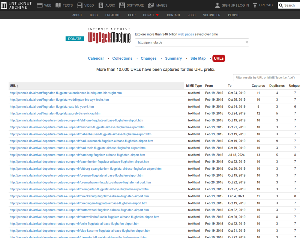 I didn't try it because all the airfields I was interested in were accessible via the URL display in the WaybackMachine.