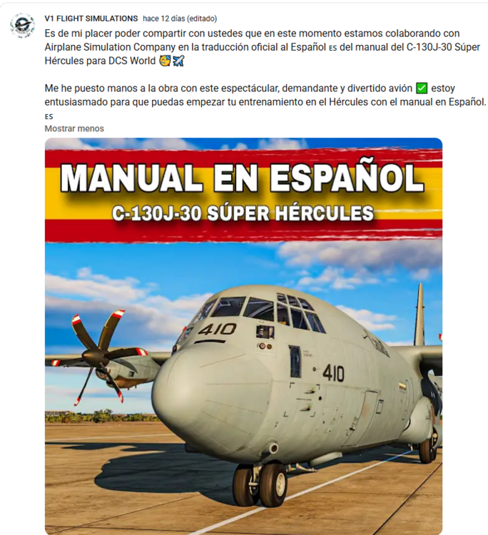 Cree este post para agregar documentación de este hermoso avion que esta por salir y entre todos nos ayudemos a poder sacar su potencial. Por ahora lo que encontré es en ingles, idioma que no domino, pero con los traductores la voy llevando. https://www.youtube.com/post/UgkxI3g0DkGmGXFBfPWX6QKzQp9IkcSUpCgb Para mi que no manejo el ingles, nuestro amigo del canal V1 FLIGHT SIMULATIONS , esta trabajando para traducir el manual . Espero que entre todos los interesados en ese avion podamos ayudanos. Saludos.