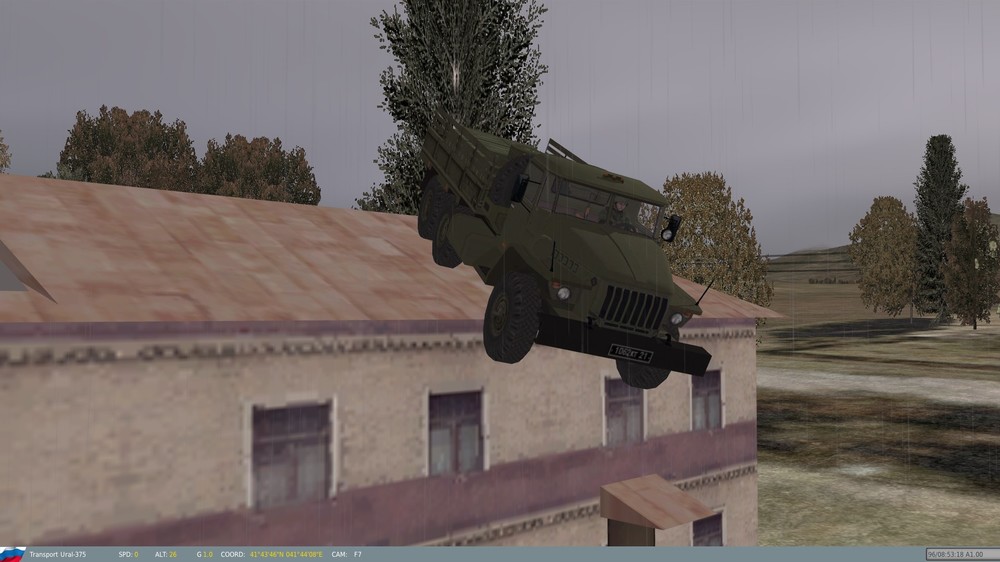I was playing a generated mission just now, and after I died I noticed that one of the NPC trucks spawned on the top of a house : / His apparent coziness on the roof was a great nuisance to the other truck drivers in his unit on the ground behind him, who seemed to want to get a move on. (The truck on the roof didn't move at all while I was browsing through the NPC units) truck-on-roof.trk