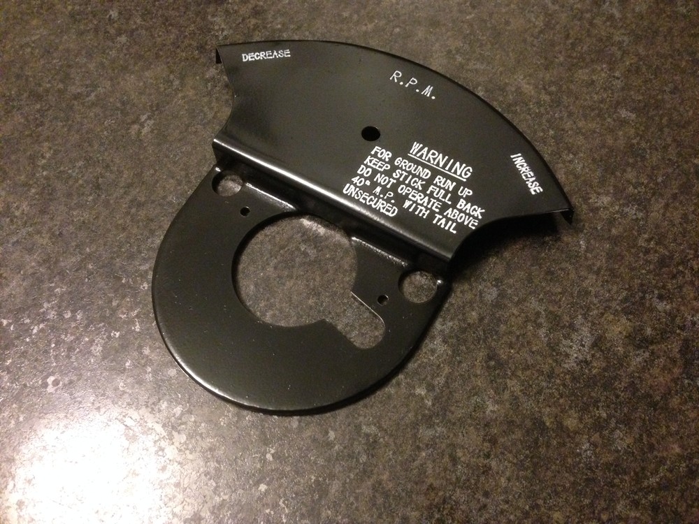 I don't mind if you point out the nits...it only makes for a better end result for everyone (myself included). I would like to know about anything that I didn't get right that I haven't noticed yet. Here are the ones I know about: 1. Pitch lever is not bent correctly. It is currently bent at a 90 deg angle, but should be bent in a radius and angled down toward the front of the faceplate. 2. THR LOCK knob should be a larger diameter (I messed up on the outside diameter when turning this part on the lathe and didn't find out until I had it on the mill). Also, technically this part used to be cast and would have had raised, instead of engraved lettering. 3. The markers on the mixture plate should be rectangular - since I'm machining and then filling with ink, they need to be radiused 4. The handle on the prop and mixt plate is attached with screws instead of rivets and the posts are put together with pop rivets instead of solid rivets. 5. Mixture lever pointer was put together with pop rivets instead of solid 6. Main body is a reasonable facsimile of the original since it isn't currently a casting - wall thickness is lighter in some spots and some webbing between the posts is missing. 7. For some reason the warning message on the faceplate doesn't look like it's quite in the right position...the text size and vertical spacing is good, but something seems off. The bend just below the warning is too deep, so that may be why it doesn't quite look right.