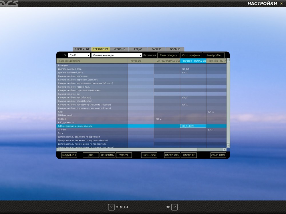 А на мой вопрос по настройке раздельного торможения на педали и управления передней стойкой нет ответа?:( http://forums.eagle.ru/showthread.php?t=97313&page=466 Вот обсуждения тормозной системы СУ-27, в том числе людьми, судя по ответам, имеющими налет на этом типе http://www.avsim.su/forum/topic/124626-tormoznaya-sistema-na-su-27/page-2 Педали стандартные "CH", конфигурация компа и ситемы в подписи, скрины настроек осей Су-27 и F-15C приложены. Подсвечены интересующие меня команды. Или мне переносить его в "Хотелки"?