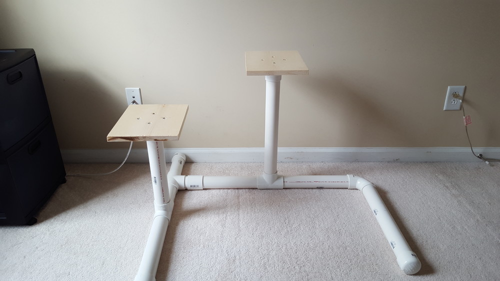 thanks! Well the measurements are pretty different based on the type of chair you are sitting in but I will give you the parts list and height dimensions 6x 2x24 2 inch pvc pipes 1 2" 90 degree elbow 3x 2" end caps 3x 2" high pressure T fittings 2x 2 inch shower drains (you must remove the base plate and drain and you can mount to the wood) 2 bags 1/4" number 20 1" long screws (when you drill holes in wood you can tighten the screws into the wood to countersink them) 1 can PVC welding cement 2x 10x12" common wood pieces (use common wood not oak or anything hard or you wont be able to easily counter sink screws) the throttle sits 18 1/2" high so it can fit under my desk and my arm doesn't hit desk when advancing throttle forward. the stick base sits 22 inches high to give clearance for my legs underneath. you will have to get the pieces around your chair and do measurements to figure out how to cut. I used a mitre box and mitre saw to do the cutting and it cuts like butter through pvc pipe. Please note the 3 inch long extension on the top left was not part of the original build. I made my cut too short and my throttle was hitting my chair. The fittings counter sink about 1 and 1/2 inches so you have to take that into account when fitting them together!!!