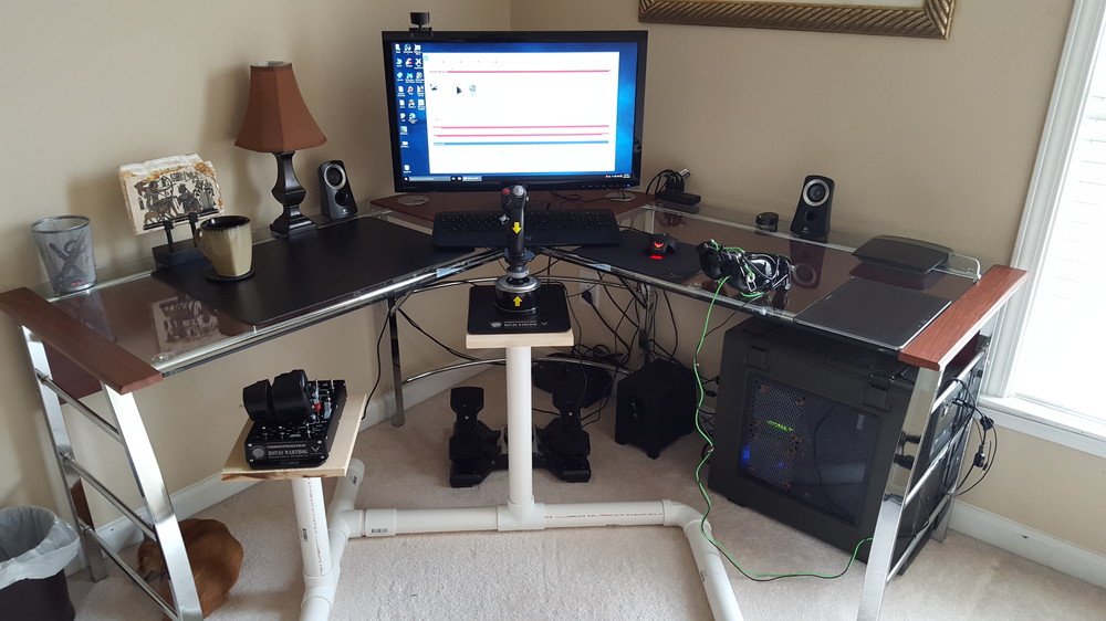 just thought id post my newest build for my HOTAS Warthog system. Only costs around 90 bucks to build and about 3 hours of time to measure and cut. Its still rough. Needs painting and some nice patchwork on the wood.