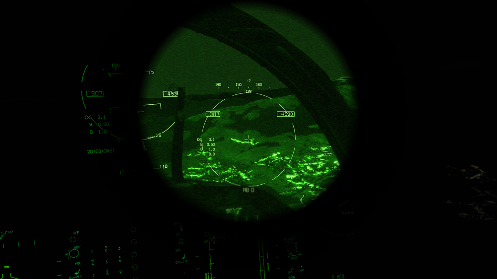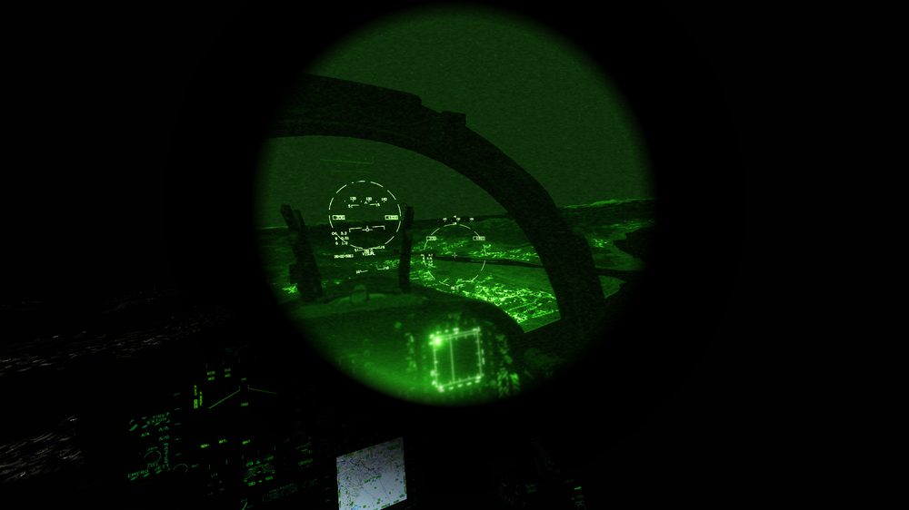 I have noticed that the NVG FOV is variable depending on in-cockpit zoom level rather than a fixed FOV. The JHMCS on the hornet correctly maintains a consistent FOV during in-cockpit zoom. See below: The NVG FOV should be locked (to about the FOV shown below from experience) to allow easier 'looking under the goggs' for cockpit work, using the MDIs etc... With this, there should be an option to slew the NVG FOV in the screen FOV (up / down). Also, JHMCS + NVG might want to be one or the other, not both...