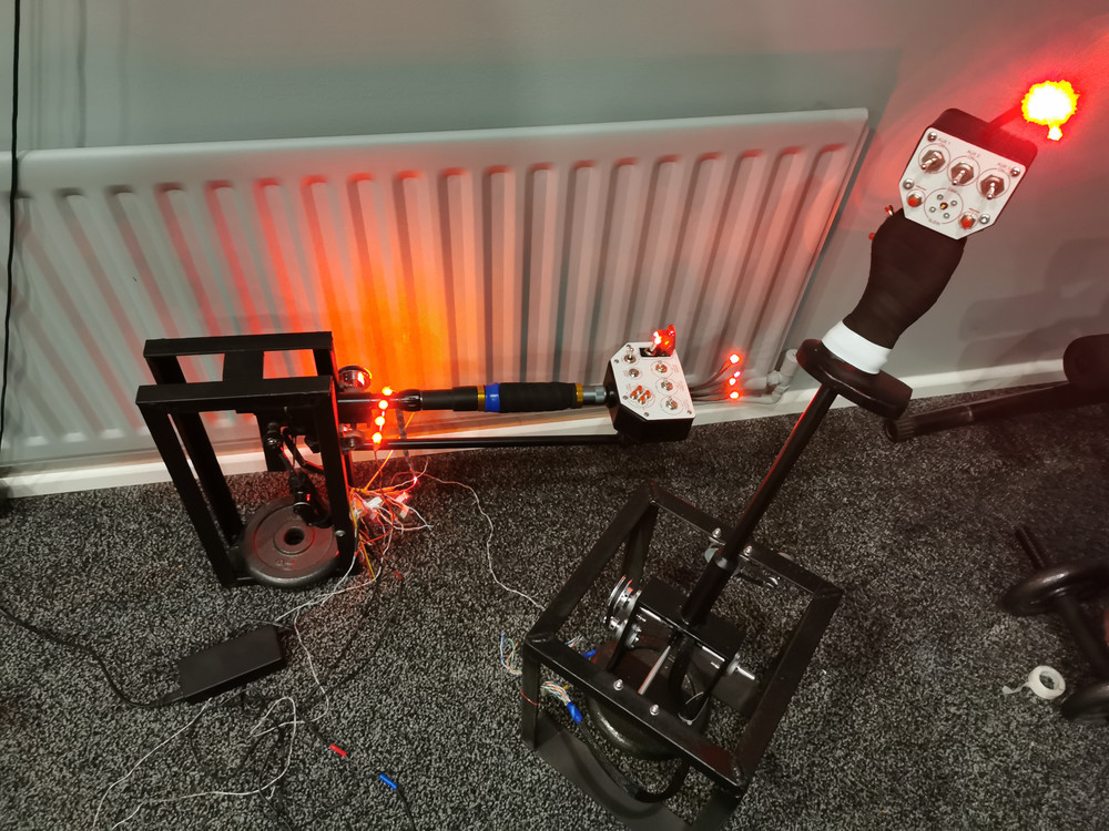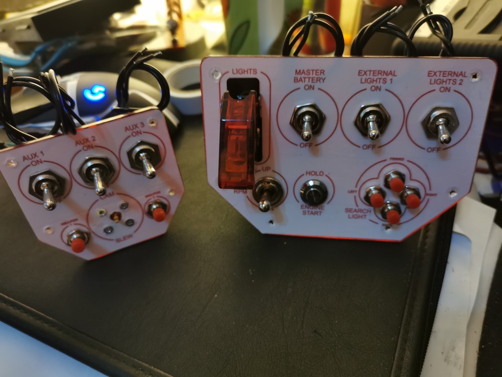 I started building my own peripherals. I am using basic hand tools so do not expect much. Plywood and PVC anyone? I was not too crazy about my first faceplate, and I didn't like the black switches so I made new ones I finished making the cage for the Collective I am experimenting here with gearing the axis, I like my solution so be kind So I started building a gimbal for my cyclic. The welds are garbage but so is my welding machine. Ugly but strong. I am not big on cosmetics, more concerned with how it works. Maybe I will work on making it pretty when it all functions. The gears are smooth and accurate. They are also not needed but I am doing an experiment with my build. I might add more pictures when I get more done